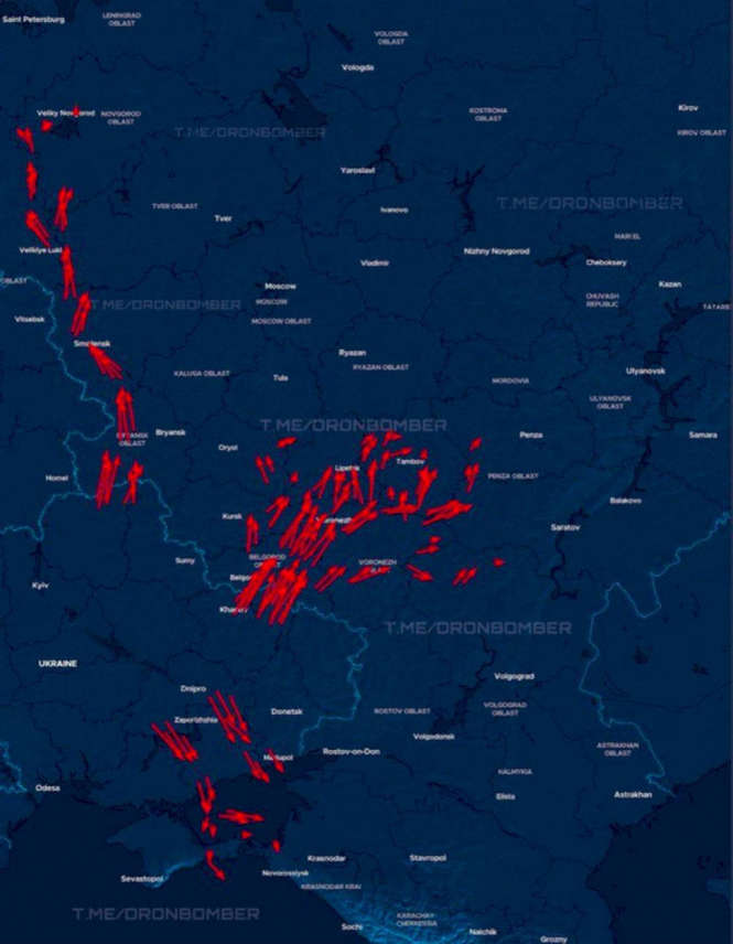 Атака 4 квітня показує коридор до Балтійського моря, масу дронів, що рухаються через Бєлгород, і ще більше дронів, що рухаються на південь через Маріуполь і Запоріжжя.